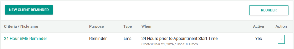 We’ll save this template and you can see it’s a reminder for 24 hours prior to the appointment start time.