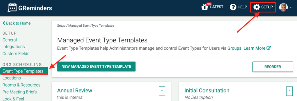 The primary reason for utilizing Event Type Templates is to streamline the onboarding process of new GReminders users in your organization. This article will demonstrate how administrators can provide scheduling capabilities, all set up and ready for new users the moment they log into GReminders for the first time.