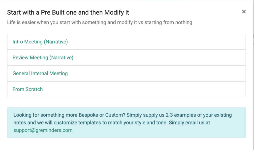GReminders comes equipped with ready-to-use meeting templates, allowing you to get started immediately. Alternatively, you can create custom templates. Start by using the existing templates to familiarize yourself with the process, and then experiment with building your own to suit your specific needs.