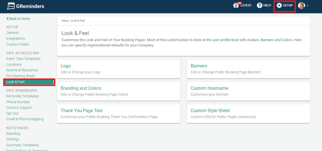 You can set up the default look of your scheduling and routing pages for your organization under Look and Feel. This includes:
