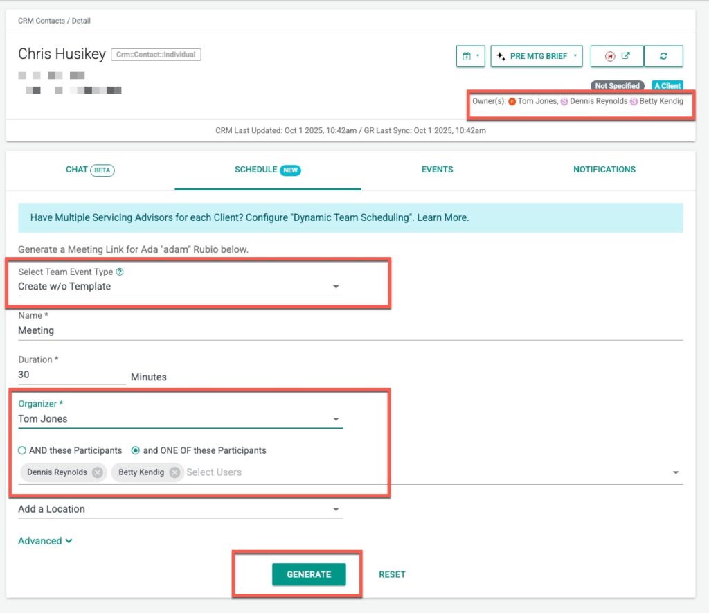 If you have multiple “Owners” / Advisors of a Account / Household and you want to schedule a meeting with all or some of those Advisors/Owners this article is for you.
