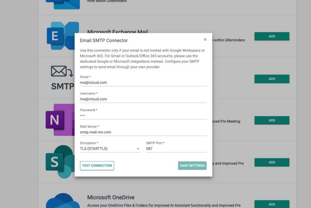 With GReminders you can bring your own Email service. If you use Google or Microsoft see this article.