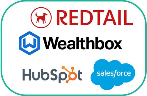 • Salesforce, Hubspot, Redtail, Wealthbox, Pipedrive, PreciseFP, …