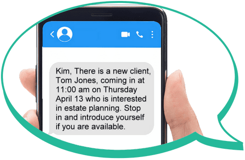 Our office is crazy busy and sending text reminders to clients has been great, but with attorneys in and out of the office all day, reminding them of their own upcoming appointments has been equally important.