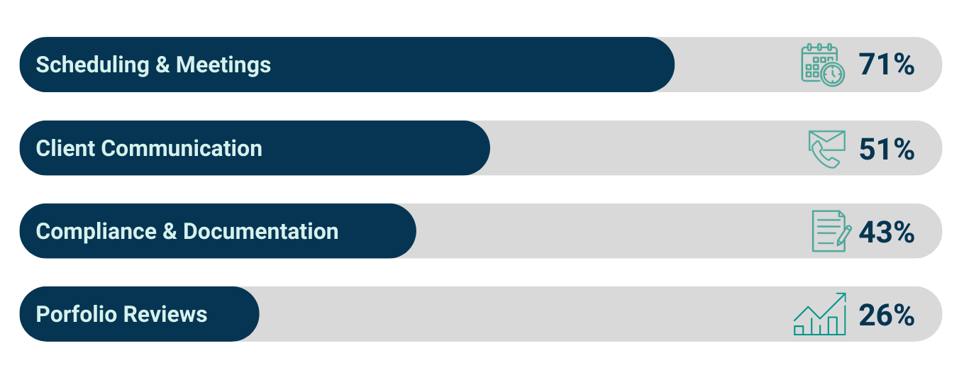 AI-driven automation didn't just save time - it fundamentally changed how advisors work. Scheduling and meetings saw the biggest transformation, with over 70% of advisors reporting significant changes.